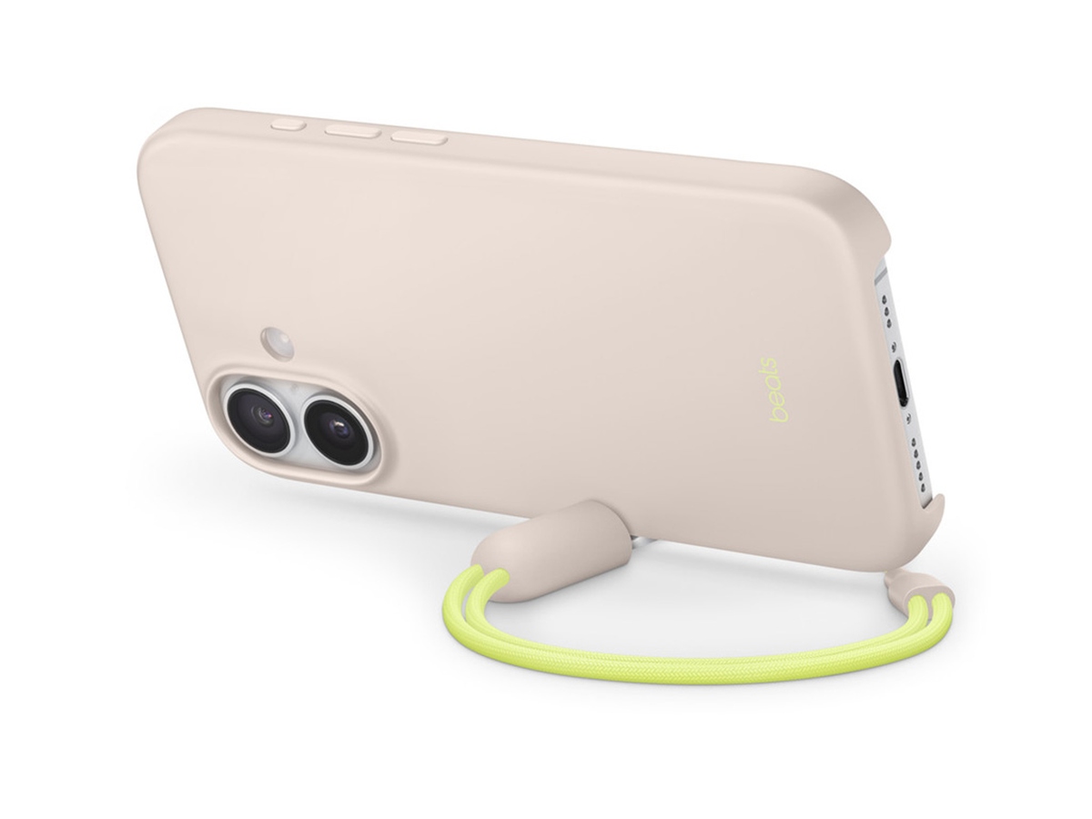Beats Kickstand Case iPhone 17 mit MagSafe und Kamerasteuerung kalkstein Das Case wurde entwickelt, um dein iPhone vor Kratzern und bei Stürzen zu schützen und kommt mit einer praktischen abnehmbaren Tragebandschlaufe, die du außerdem als Stütze verwenden kannst, um freihändig Inhalte im Querformat auf dem Display anzuschauen. Um die Stütze aufzubauen, kannst du den Adapter am Ende der Tragebandschlaufe öffnen und an einem magnetischen Punkt am Rand des Case anbringen. Das Beats iPhone 17 Kickstand Case mit MagSafe und Kamerasteuerung hat im Laufe des Design‑ und Fertigungsprozesses Tausende von Teststunden durchlaufen. Die robuste Rückseite aus Polycarbonat macht das Case dünn und leicht und wird von flexiblen Seitenwänden umrandet, die für einen besseren Schutz vor Stößen sorgen. Das matte Finish auf der Außenseite reduziert sichtbare Kratzer, Flecken und Fingerabdrücke, während das Innenfutter aus Mikrofaser für weniger Kratzer und Abrieb auf der Oberfläche sorgt. Das Hardshell Case funktioniert nahtlos mit der Kamerasteuerung, um präzise Fingerbewegungen wie Drücken und Streichen zu erkennen. Das Beats iPhone 17 Kickstand Case ist mit MagSafe kompatibel und hat integrierte Magnete, die es perfekt ausrichten. Damit hält es ganz einfach und sorgt für effizientes kabelloses Laden. Unten ist das Case offen, um einfacheres Streichen zu ermöglichen.