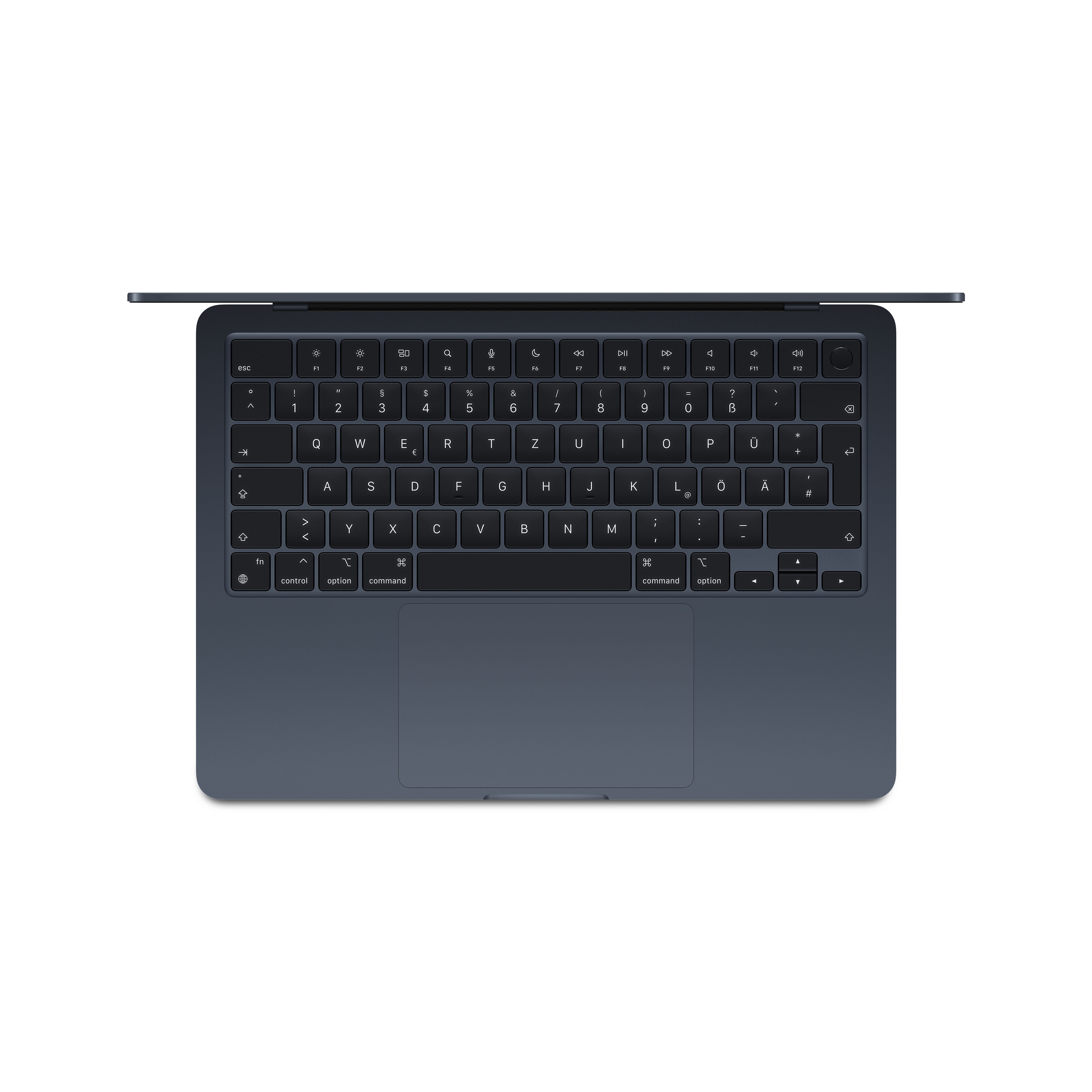 13" MacBook Air. Mobil. Mächtig. M3. Der M3 Chip macht das supermobile 13" MacBook Air noch leistungsfähiger. Mit bis zu 18 Stunden Batterielaufzeit1 kannst du überall blitzschnell arbeiten und spielen. • SUPERLEICHT. M3GAPOWER. – Das ultraschnelle MacBook Air mit dem M3 Chip ist ein supermobiler Laptop, mit dem du so schnell arbeitest, wie du spielst. • MOBILES DESIGN – Superleicht und 11,5 mm dünn, sodass du dein MacBook Air überallhin mitnehmen kannst. • MEHR SCHNELLER ERLEDIGEN – Mit der leistungsstarken 8 Core CPU und der bis zu 10 Core GPU des Apple M3 Chip läuft alles flüssig. • BIS ZU 18 STUNDEN BATTERIELAUFZEIT1 – Fantastische Batterielaufzeit für den ganzen Tag. Da kannst du dein Netzteil zu Hause lassen. • EIN BRILLANTES DISPLAY – Das 13,6" Liquid Retina Display2 unterstützt eine Milliarde Farben. • GUT AUSSEHEN, GROSSARTIG KLINGEN – Mit einer 1080p HD Kamera, drei Mikrofonen und vier Lautsprechern mit 3D Audio sieht alles großartig aus und klingt auch so. • SUPERSCHNELLE APPS DANK APPLE CHIPS – Alle deine wichtigsten Apps, von Microsoft 365 bis Adobe Creative Cloud, laufen auf macOS blitzschnell.3 • GUTE CONNECTIONS – Das MacBook Air hat zwei Thunderbolt Anschlüsse, einen Kopfhöreranschluss, WLAN 6E4, Bluetooth 5.3 und einen MagSafe Ladeanschluss. Und es unterstützt bis zu zwei externe Displays, wenn der Laptop zugeklappt ist. • DU LIEBST DEIN IPHONE? DU WIRST DEN MAC LIEBEN. – Das MacBook Air funktioniert einfach mit deinen anderen Apple Geräten.5 Starte eine E Mail auf deinem iPhone und beende sie auf deinem Mac. Sende Textnachrichten von deinem Mac. Und noch viel mehr. Es sind konfigurierbare Optionen verfügbar. 1Die Batterielaufzeit variiert abhängig von Verwendung und Konfiguration. Weitere Infos unterapple.com/de/batteries. 2Das Display des 13" MacBook Air hat oben gerundete Ecken. Als Standard-Rechteck gemessen hat das Display eine Diagonale von 13,6" (34,46 cm). Der tatsächlich sichtbare Displaybereich ist kleiner. 3Apps sind im App Store erhältlich. 4WLAN 6E ist verfügbar in Ländern und Regionen, in denen es unterstützt wird. 5Erfordert iCloud und eine Internetverbindung. Technische Daten Eine vollständige Liste gibt es auf apple.com/de/macbook-air/specs.
