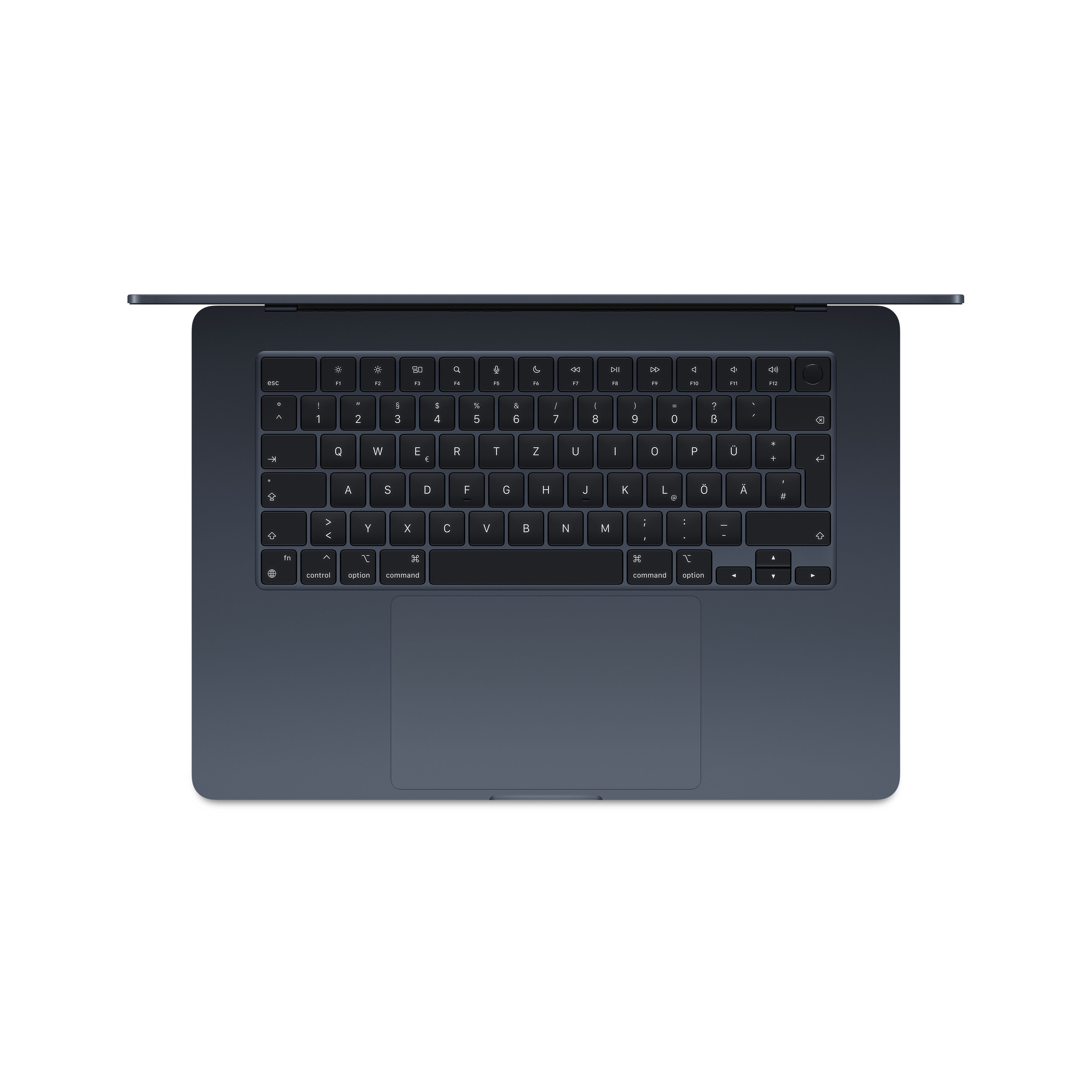 15" MacBook Air. Mobil. Mächtig. M3. Der M3 Chip macht das supermobile 15" MacBook Air noch leistungsfähiger. Mit bis zu 18 Stunden Batterielaufzeit1 kannst du überall blitzschnell arbeiten und spielen. • SUPERLEICHT. M3GAPOWER. – Das ultraschnelle MacBook Air mit dem M3 Chip ist ein supermobiler Laptop, mit dem du so schnell arbeitest, wie du spielst. • MOBILES DESIGN – Superleicht und 11,5 mm dünn, sodass du dein MacBook Air überallhin mitnehmen kannst. • MEHR SCHNELLER ERLEDIGEN – Mit der leistungsstarken 8 Core CPU und der 10 Core GPU des Apple M3 Chip läuft alles flüssig. • BIS ZU 18 STUNDEN BATTERIELAUFZEIT1 – Fantastische Batterielaufzeit für den ganzen Tag. Da kannst du dein Netzteil zu Hause lassen. • MEHR PLATZ FÜR ALLES, WAS DU LIEBST – Das 15,3" Liquid Retina Display2 unterstützt eine Milliarde Farben. • GUT AUSSEHEN, GROSSARTIG KLINGEN – Mit einer 1080p HD Kamera, drei Mikrofonen und sechs Lautsprechern mit 3D Audio sieht alles großartig aus und klingt auch so. • SUPERSCHNELLE APPS DANK APPLE CHIPS – Alle deine wichtigsten Apps, von Microsoft 365 bis Adobe Creative Cloud, laufen auf macOS blitzschnell.3 • GUTE CONNECTIONS – Das MacBook Air hat zwei Thunderbolt Anschlüsse, einen Kopfhöreranschluss, WLAN 6E4, Bluetooth 5.3 und einen MagSafe Ladeanschluss. Und es unterstützt bis zu zwei externe Displays, wenn der Laptop zugeklappt ist. • DU LIEBST DEIN IPHONE? DU WIRST DEN MAC LIEBEN. – Das MacBook Air funktioniert einfach mit deinen anderen Apple Geräten.5 Starte eine E Mail auf deinem iPhone und beende sie auf deinem Mac. Sende Textnachrichten von deinem Mac. Und noch viel mehr. Es sind konfigurierbare Optionen verfügbar. 1Die Batterielaufzeit variiert abhängig von Verwendung und Konfiguration. Weitere Infos unter apple.com/de/batteries. 2Das Display des 15" MacBook Air hat oben gerundete Ecken. Als Standard-Rechteck gemessen hat das Display eine Diagonale von 15,3" (38,91 cm). Der tatsächlich sichtbare Displaybereich ist kleiner. 3Apps sind im App Store erhältlich. 4WLAN 6E ist verfügbar in Ländern und Regionen, in denen es unterstützt wird. 5Erfordert iCloud und eine Internetverbindung. Technische Daten Eine vollständige Liste gibt es auf apple.com/de/macbook-air/specs/.