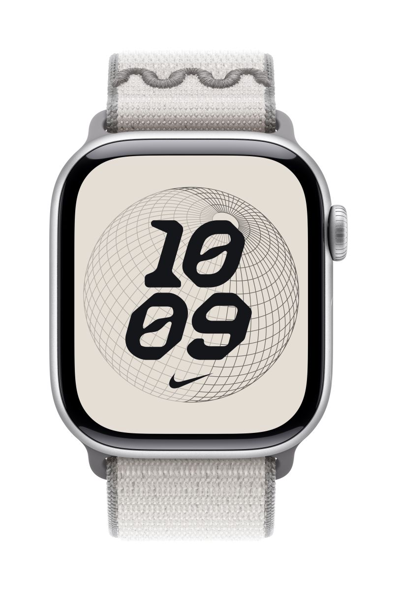 Das neu designte Nike Sport Loop mit reflektierendem Garn ist ein weiches, atmungs¬aktives und leichtes Armband mit dezentem Glanz. Durch den Klett¬verschluss und eine gewebte Zuglasche mit dem Run Swoosh Logo kannst du es auch unterwegs einfach anpassen. Das Nylongewebe mit zwei Lagen hat dichte Maschen auf der Innenseite. Sie polstern weich ab und lassen gleichzeitig Feuchtigkeit nach außen durch. Das Nike Sport Loop enthält mindestens 68 % Garnreste aus vorherigen Saisons und spart so über drei Tonnen Primärgarn. 40 mm oder 42 mm Gehäuse: Einheitsgröße (passt den meisten Handgelenken) Armband für 130–190 mm Umfang. 46 mm Gehäuse: Einheitsgröße (passt den meisten Handgelenken) Armband für 145–220 mm Umfang. Passt zu fast allen Versionen der Apple Watch. Materialien Nylon