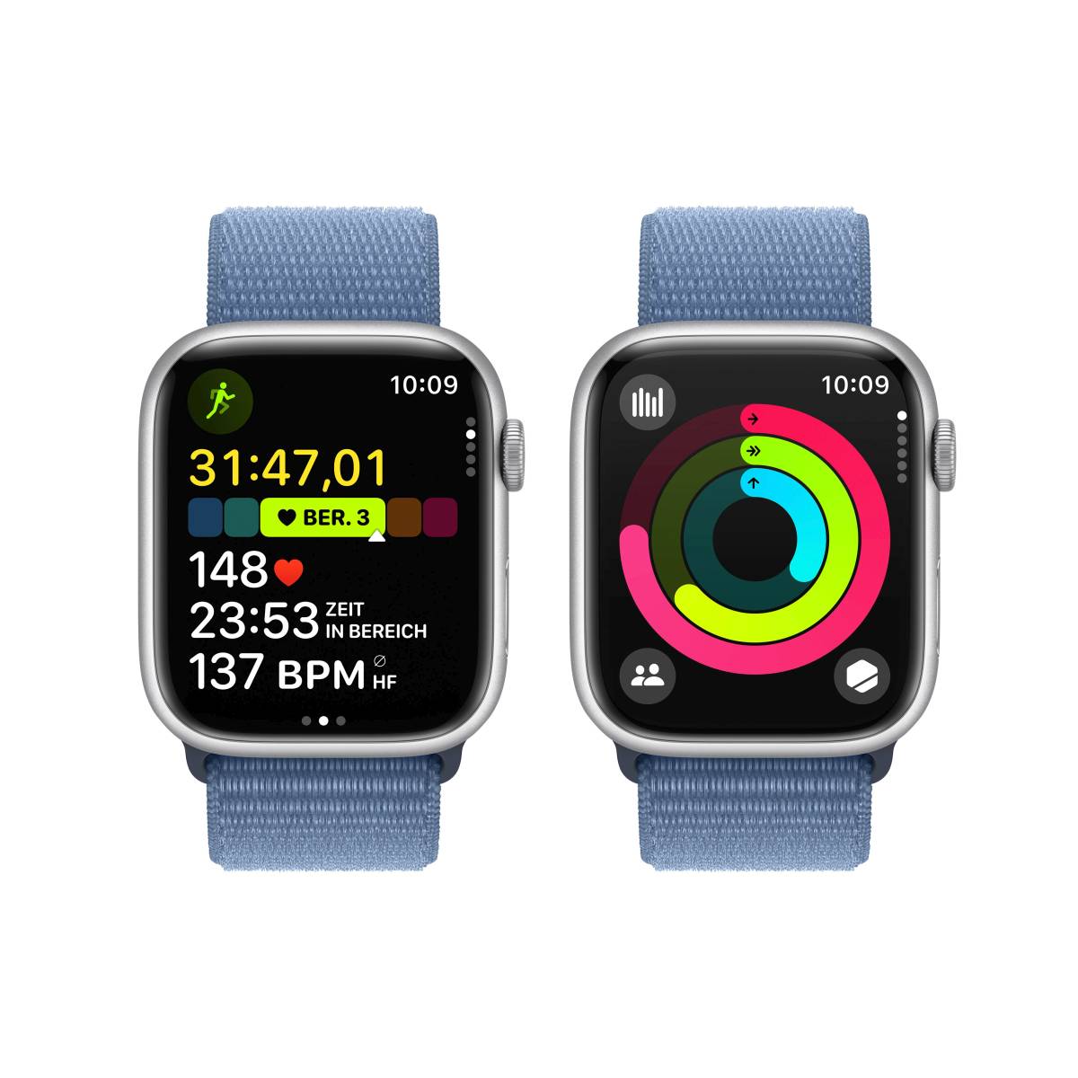 Apple Watch Series 9 Smarter. Heller. Power. Die Apple Watch Series 9 hilft dir, aktiv, gesund, sicher und in Verbindung zu bleiben. Mit der Doppeltipp Geste, einer magischen neuen Art, mit deiner Apple Watch zu interagieren,1 einem noch helleren Display, schnellerem On Device Siri und der Genauen Suche für das iPhone.2 • WARUM APPLE WATCH SERIES 9 – Das ultimative Tool für ein gesundes Leben kann jetzt noch mehr. Der S9 Chip ermöglicht ein superhelles Display und eine magische neue Geste, um schnell und einfach mit deiner Apple Watch zu interagieren, ohne das Display zu berühren. Fortschrittliche Features für Gesundheit, Sicherheit und Aktivität liefern wichtige Einblicke und rufen Hilfe, wenn du sie brauchst. Und überarbeitete Apps in watchOS geben dir mehr Infos auf einen Blick. • CO₂ NEUTRAL – Die Apple Watch Series 9 mit dem neuesten Sport Loop ist CO₂ neutral. Weitere Infos zum Engagement von Apple für die Umwelt unter apple.com/de/2030/. 3 • FORTSCHRITTLICHE GESUNDHEITSFEATURES – Behalte deinen Blutsauerstoff im Blick.4 Mach jederzeit ein EKG.5 Erhalte Mitteilungen bei unregelmäßigem Herzrhythmus.6Sieh mit dem Schlafphasen Feature, wie lange du in REM , Kern oder Tiefschlafphasen warst. Die Temperaturerkennung7 gibt dir Einblicke in deine allgemeine Gesundheit und deinen Zyklus.8 Protokolliere deinen Gemütszustand, um mehr Bewusstsein für Emotionen und mehr Resilienz aufzubauen. • STARK FÜR DEINE FITNESS – Die Trainingsapp bringt dir verschiedene Trainings und fortschrittliche Messwerte für mehr Informationen über deine Workout-Performance. Und mit der Apple Watch bekommst du 3 Monate Apple Fitness+ kostenlos.9 • INNOVATIVE SICHERHEITSFEATURES – Unfallerkennung und Sturzerkennung10 können bei einem schweren Autounfall oder Sturz einen Notdienst benachrichtigen. Und mit Notruf SOS reicht ein Knopfdruck, um Hilfe zu rufen.11 • EINFACH KOMPATIBEL – Sie funktioniert nahtlos mit deinen Apple Geräten und Services. Entsperre deinen Mac automatisch. Lass dir mit der Genauen Suche2 auf unterstützten iPhone Modellen die ungefähre Entfernung und Richtung zu deinem iPhone anzeigen. Bezahle mit Apple Pay.12 Die Apple Watch Series 9 erfordert ein iPhone Xs oder neuer mit iOS 17 oder neuer. • EINFACH PERSONALISIERBAR – Pass deine Watch an deine Stimmung oder den Moment an. Mit Armbändern in einer Vielzahl von Stilen, Materialien und Farben und stylischen, funktionalen Zifferblättern mit Komplikationen für alles, was dich interessiert. • UNGLAUBLICHE LANGLEBIGKEIT – Hart, aber härter. Sie ist bruchgeschützt, nach IP6X staubgeschützt13 und schwimmfest mit 50 m Wasserschutz.14 • BLEIB IN VERBINDUNG – Sende unterwegs eine Textnachricht, mach einen Anruf, hör Musik und Podcasts, verwende Siri und erhalte Mitteilungen. Die Apple Watch Series 9 (GPS) funktioniert mit deinem iPhone und im WLAN, damit du in Verbindung bleibst. Technische Daten Eine vollständige Liste gibt es auf apple.com/de/watch/compare/. Die Apple Watch Series 9 erfordert ein iPhone Xs oder neuer mit iOS 17 oder neuer. 1Ende 2023 erhältlich. Erfordert Apple Watch Series 9 oder Apple Watch Ultra 2. 2Die Genauigkeit hängt von der Umgebung ab. Funktioniert mit dem iPhone 15 oder 15 Pro. 3Weitere Infos auf apple.com/de/2030. 4Die Blutsauerstoff App eignet sich nur zur Wellness-Nutzung und ist nicht für medizinische Zwecke bestimmt. 5Die EKG App ist verfügbar auf der Apple Watch Series 4 und neuer (ausgenommen Apple Watch SE) und kann ein EKG, vergleichbar mit einem 1 Kanal EKG, erstellen. Für die Verwendung durch Personen ab 22 Jahren gedacht. 6Mitteilungen bei unregelmäßigem Herzrhythmus erfordern die neuesten Versionen von watchOS und iOS. Das Feature ist nicht bestimmt zur Verwendung durch Personen unter 22 Jahren oder Personen, bei denen bereits Vorhofflimmern (AFib) diagnostiziert wurde. 7Das Feature zur Temperaturerkennung ist nicht für medizinische Zwecke bestimmt. 8Die Zyklusprotokoll App sollte nicht zur Familienplanung oder zur Diagnose einer Erkrankung verwendet werden. 9Für Apple Fitness+ ist ein Abonnement erforderlich. 10Die aktualisierte Sturzerkennung ist verfügbar auf der Apple Watch Series 4 und neuer mit watchOS 8 und neuer. 11Notruf SOS erfordert eine Mobilfunkverbindung oder WLAN Anrufe mit einer Internetverbindung von deiner Apple Watch oder deinem iPhone in der Nähe. 12Apple Pay kann nicht in allen Ländern genutzt werden. Eine Liste der Apple Pay Länder und Regionen gibt es unter support.apple.com/de-de/HT207957. 13Die Apple Watch Series 9 ist nach IP6X vor Staub geschützt. 14Die Apple Watch Series 9 ist nach ISO Norm 22810:2010 wassergeschützt bis 50 Meter. Das bedeutet, sie ist für Aktivitäten in flachem Wasser wie Schwimmen in einem Pool oder im Meer geeignet. Die Apple Watch Series 9 sollte nicht beim Sporttauchen, Wasserski oder bei anderen Wasseraktivitäten mit hohen Geschwindigkeiten oder in tieferem Wasser verwendet werden. Wasserschutz ist kein dauerhafter Zustand und kann im Laufe der Zeit abnehmen. Weitere Infos findest du unter support.apple.com/de-de/HT205000. Die Apple Watch Series 9 ist auch nach IP6X vor Staub geschützt.