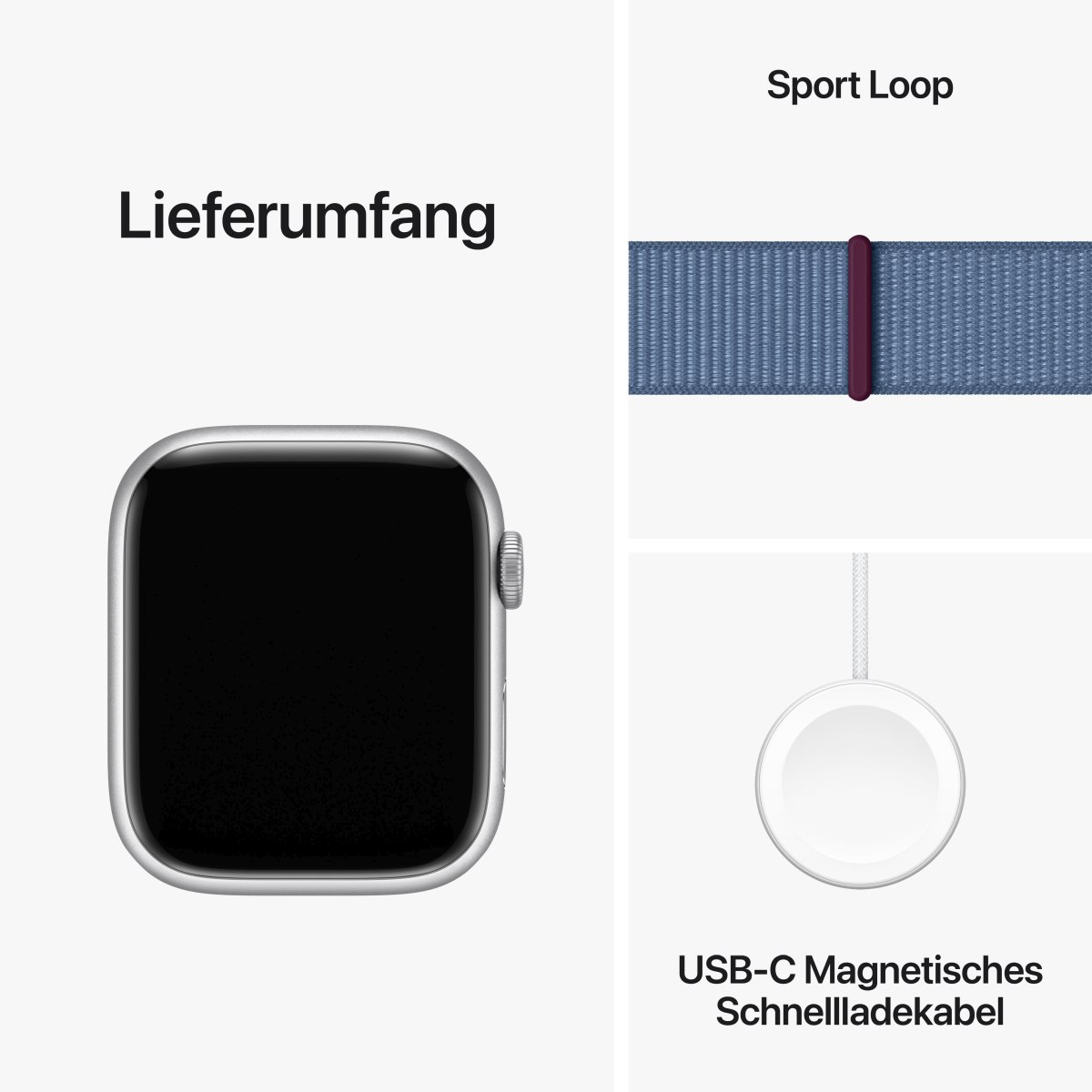 Apple Watch S9 Aluminium 45mm Silber (Sport Loop winterblau) (B-Artikel)