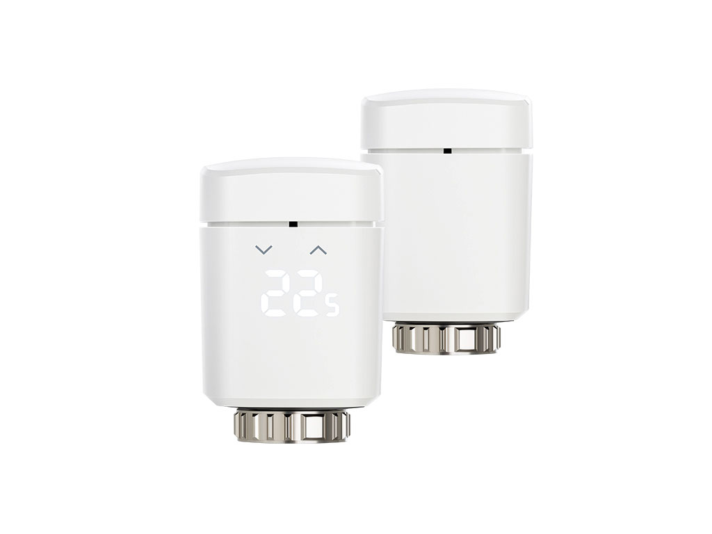 Eve Thermo Smartes Heizkörperthermostat mit Apple HomeKit-Technologie, Zeitpläne • Neu: Flüsterleise, verbessertes Display & Bedienfeld • Heize mit Zeitplänen einzelne Räume oder das ganze Haus passend zu deinem Tagesablauf • Senke die Temperatur automatisch ab, wenn du nicht zu Hause bist • Stelle mühelos deine Wohlfühltemperatur ein - per App, Siri oder direkt an der Heizung • HomeKit-Unterstützung für ungeahnten Bedienkomfort und hohe Sicherheit • Einfache Einrichtung: Direkte Verbindung via Bluetooth Low Energy Technologie - keine Bridge erforderlich • Fenstererkennung, Urlaubsmodus, Frost- und Ventilschutz und vieles mehr • Strengster Datenschutz – Dein Zuhause, deine Daten Mit Eve Thermo sorgt deine Heizung automatisch für die perfekte Temperatur, passend zu deinem Tagesablauf. Steuere deine Raumtemperatur ganz bequem per App, Siri, über Zeitpläne, das integrierte Touch-Bedienfeld oder anhand deiner Anwesenheit. Wann immer du kommst und gehst, Eve Thermo regelt deine Heizung passend dazu: Energie sparend, wenn du unterwegs bist. Behaglich warm, wenn du es dir zu Hause gemütlich machst. Eve Thermo nutzt Bluetooth-Technologie und verbindet sich direkt mit deinem iPhone oder iPad, ohne dass du eine Bridge einrichten musst. Gleichzeitig sorgt die revolutionäre Apple HomeKit-Technologie für eine unvergleichlich einfache Bedienung und ein extrem hohes Sicherheitsniveau. Technische Spezifikationen Zur Steuerung dieses HomeKit-fähigen Geräts wird iOS 12.4 oder neuer empfohlen. Automation und die Steuerung dieses HomeKit-fähigen Geräts von unterwegs aus erfordern ein HomePod, Apple TV mit tvOS 12.4 (oder neuer) oder ein als Steuerzentrale konfiguriertes iPad. Ventil-Kompatibilität • M 30 x 1,5 • Adapter im Lieferumfang: Danfoss RA, RAV, RAVL Stromversorgung • 2 austauschbare AA-Batterien Funkverbindung • Bluetooth Low Energy Verpackungsinhalt • Eve Thermo, 2x AA austauschbare Batterien, Montageschraube, Adapter-Set (Danfoss RA, RAV, RAVL), Quick Start Guide