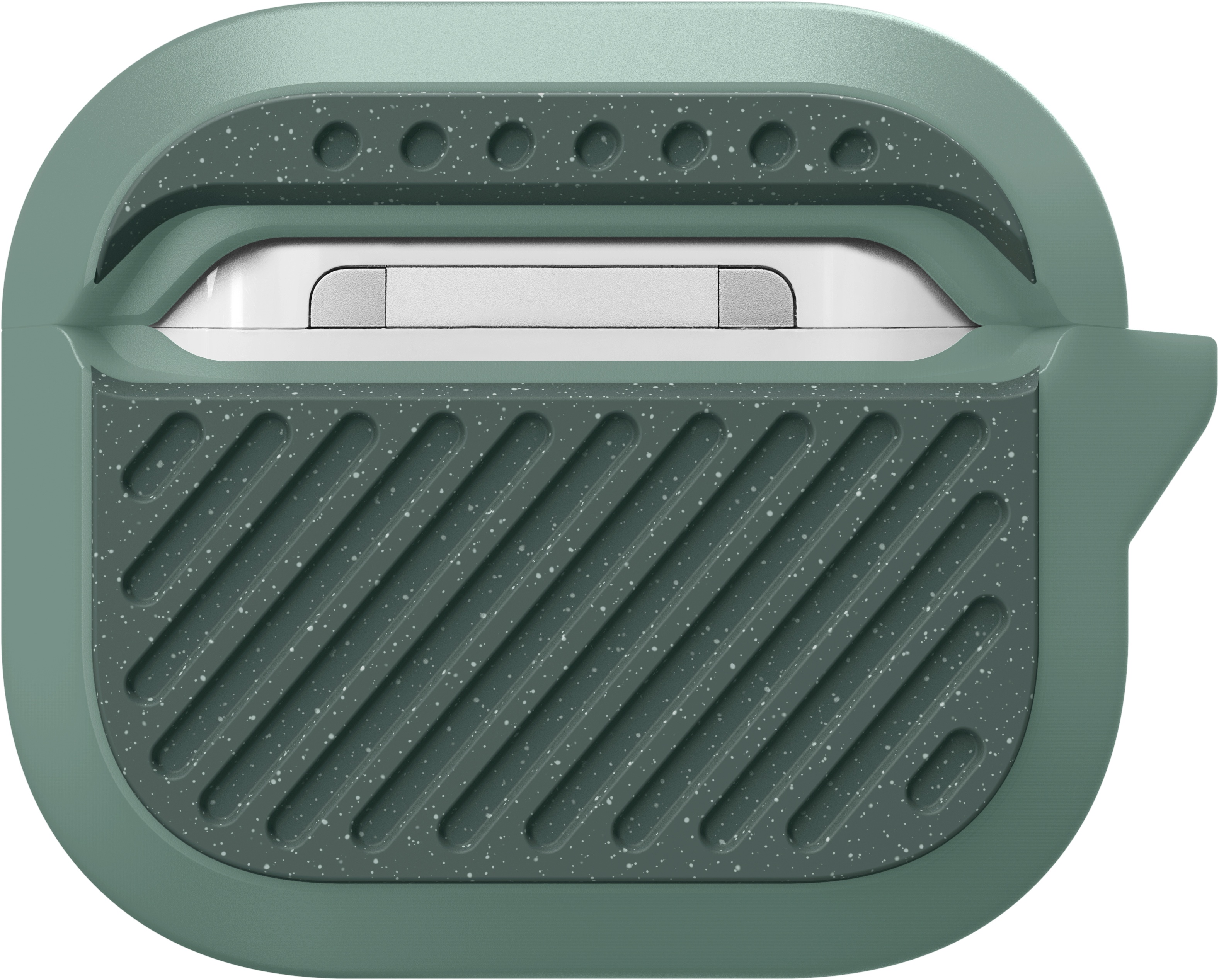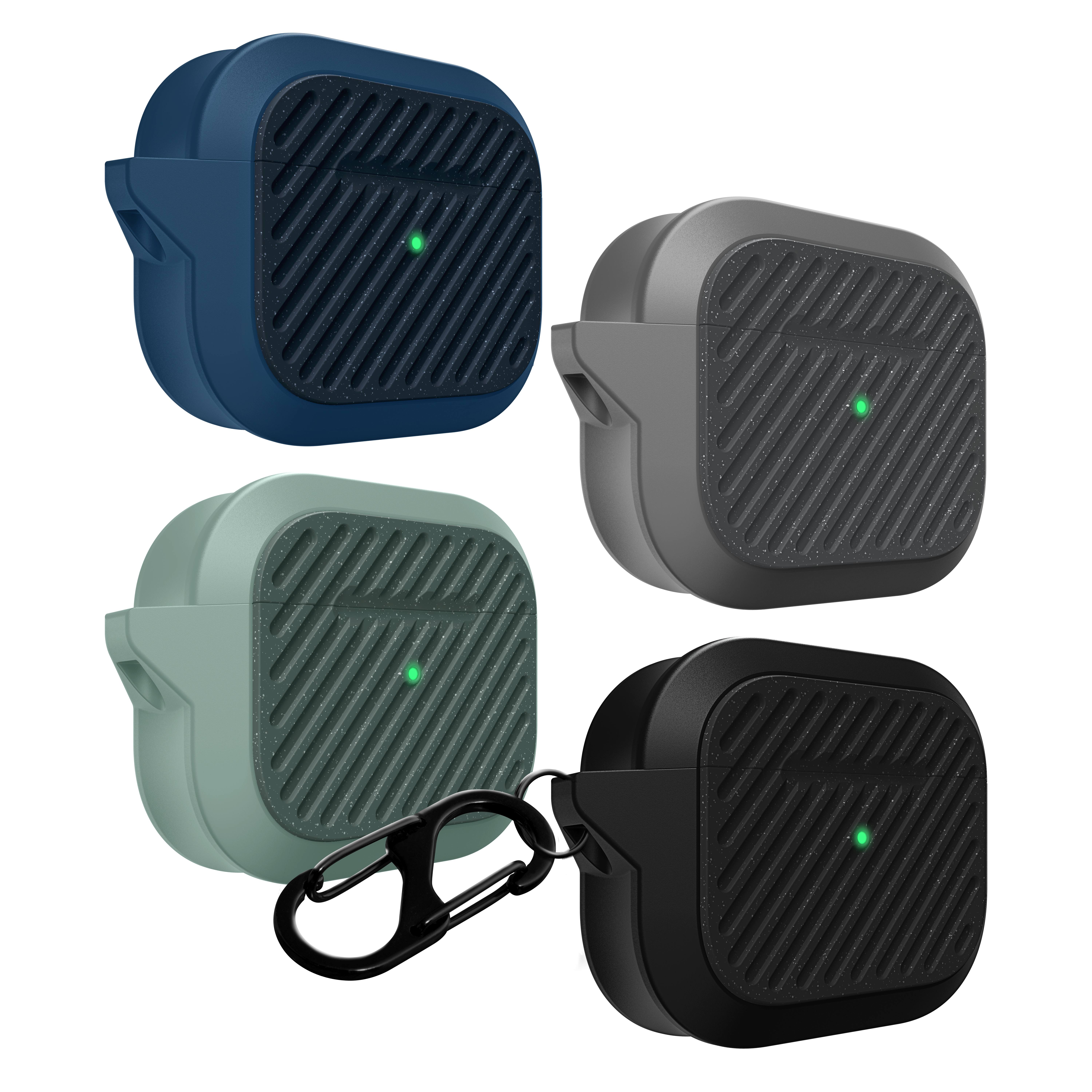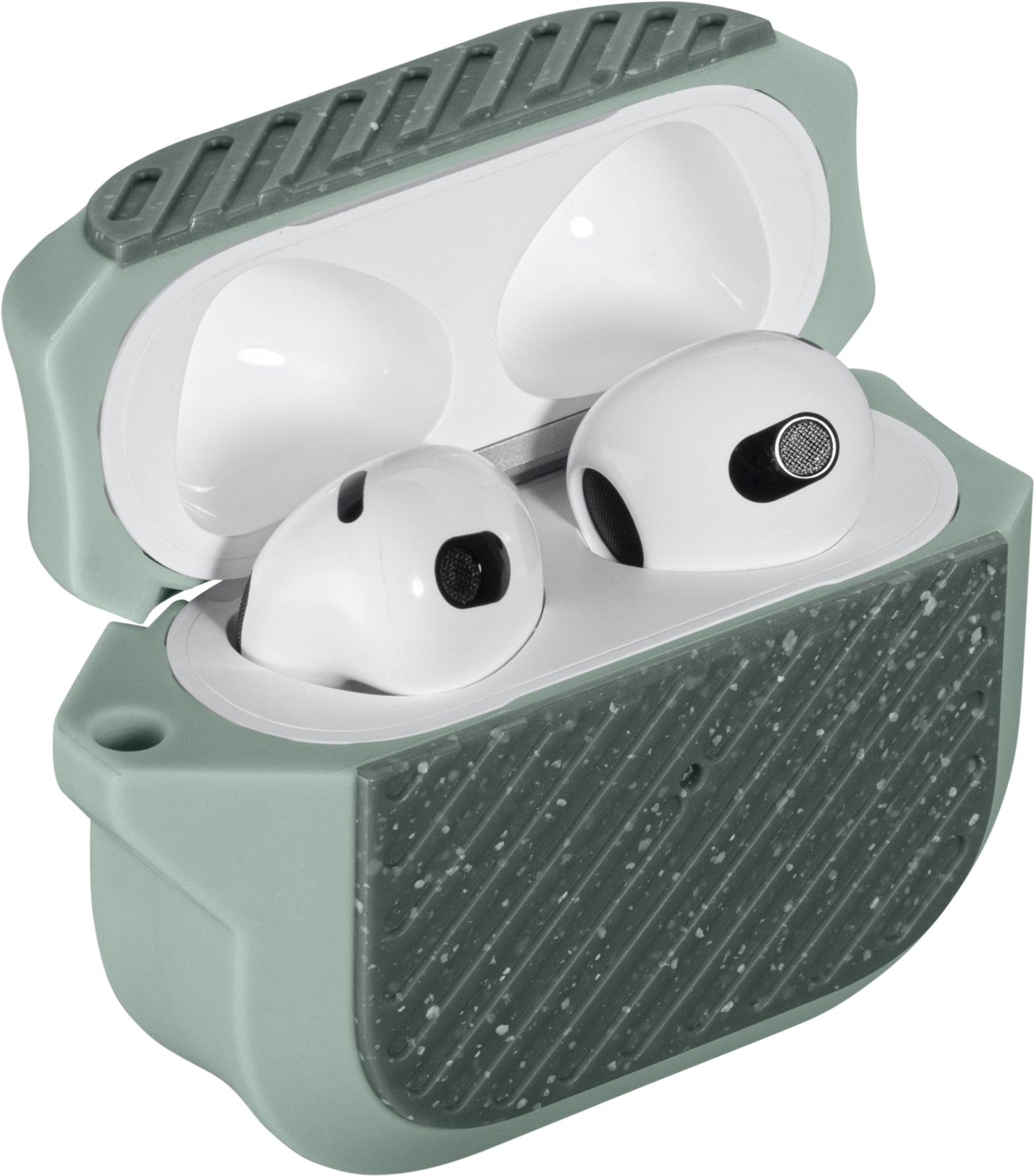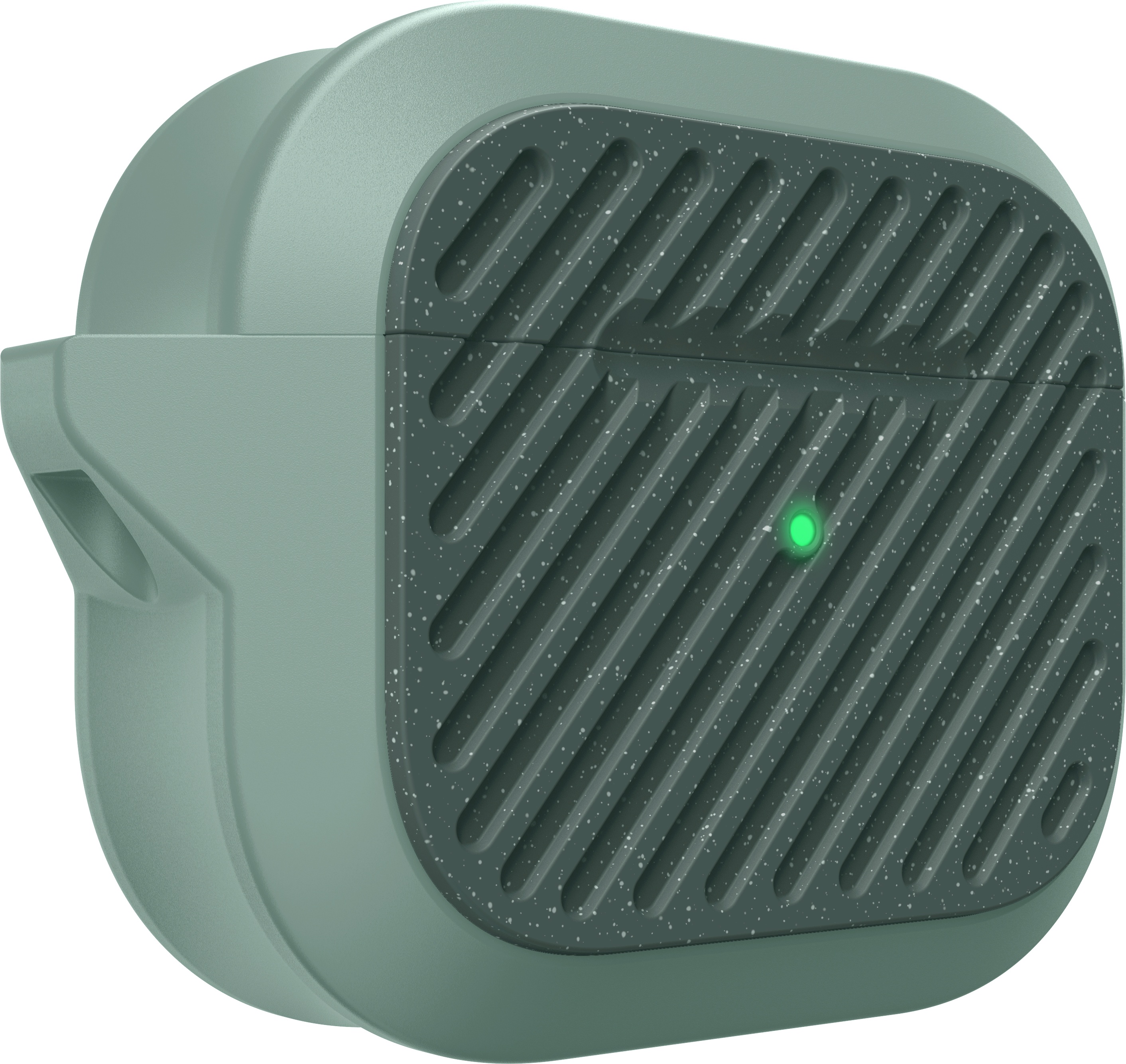 LAUT Capsule Impkt AirPods (3.Gen.) [Sage Green] Die CAPSULE IMPKT für AirPods 3 ist zu allem bereit und nur für eine Sache gebaut - zum Überleben. Die Kapsel besteht aus einem haltbaren, stoßdämpfenden Kernmaterial mit einer harten Polycarbonat-Vorder- und -Rückseite und ist so konzipiert, dass sie fast jeden Stoß aushält. Ausgestattet mit einem funktionalen Karabinerhaken für schnellen Zugriff und Sicherheit unterwegs, wurde die CAPSULE für alle aktiven Menschen entwickelt, um die AirPods 3 zu schützen, während sie unterwegs sind. Das Etui wird mit einem Karabinerhaken geliefert, damit du deine AirPods auf jedes Abenteuer mitnehmen kannst. Lernen Sie eine der robustesten AirPods 3-Hüllen auf dem Markt kennen! Ultra-robust Hergestellt aus einem haltbaren, stoßdämpfenden Kernmaterial mit einer harten Polycarbonat-Vorder- und Rückwand. Stoßfest Die Kapsel ist so konstruiert, dass sie fast jeden Aufprall übersteht und ableitet. Kompatibel mit kabellosen Qi-Ladegeräten Kabelloses Laden - Sie müssen das Gehäuse zum Laden nicht abnehmen, einfach fallen lassen und los geht's. Inklusive Karabinerhaken Befestigen Sie Ihre Airpods ganz einfach an Ihrem Schlüssel, Ihrer Tasche oder Ihrer Gürtelschlaufe
