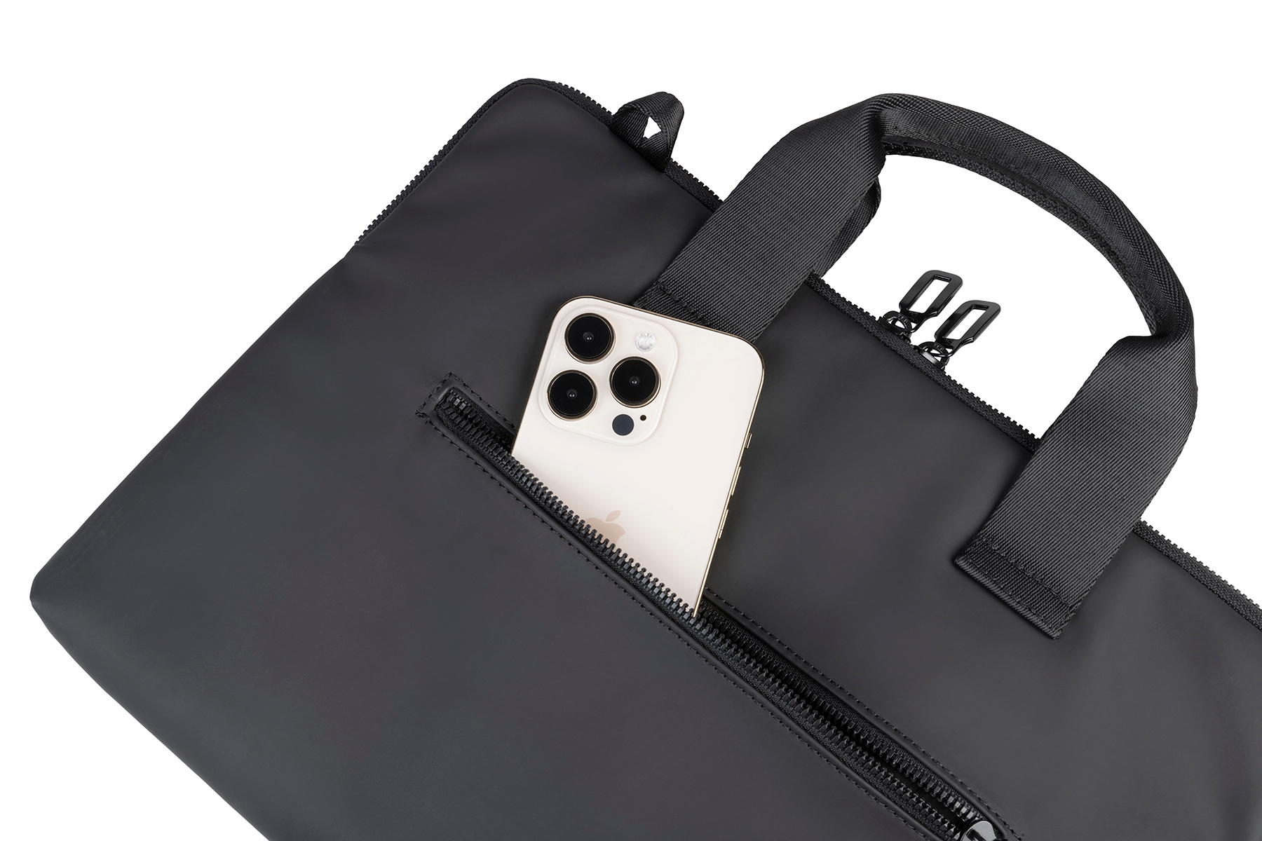 - Wasserfestes, recycletes Kunststoff mit gummierter, matter, angenehmer - Oberfläche - Gepolstertes Laptopfach - abnehmbarer Schultergurt - Aussentasche für Zubehör