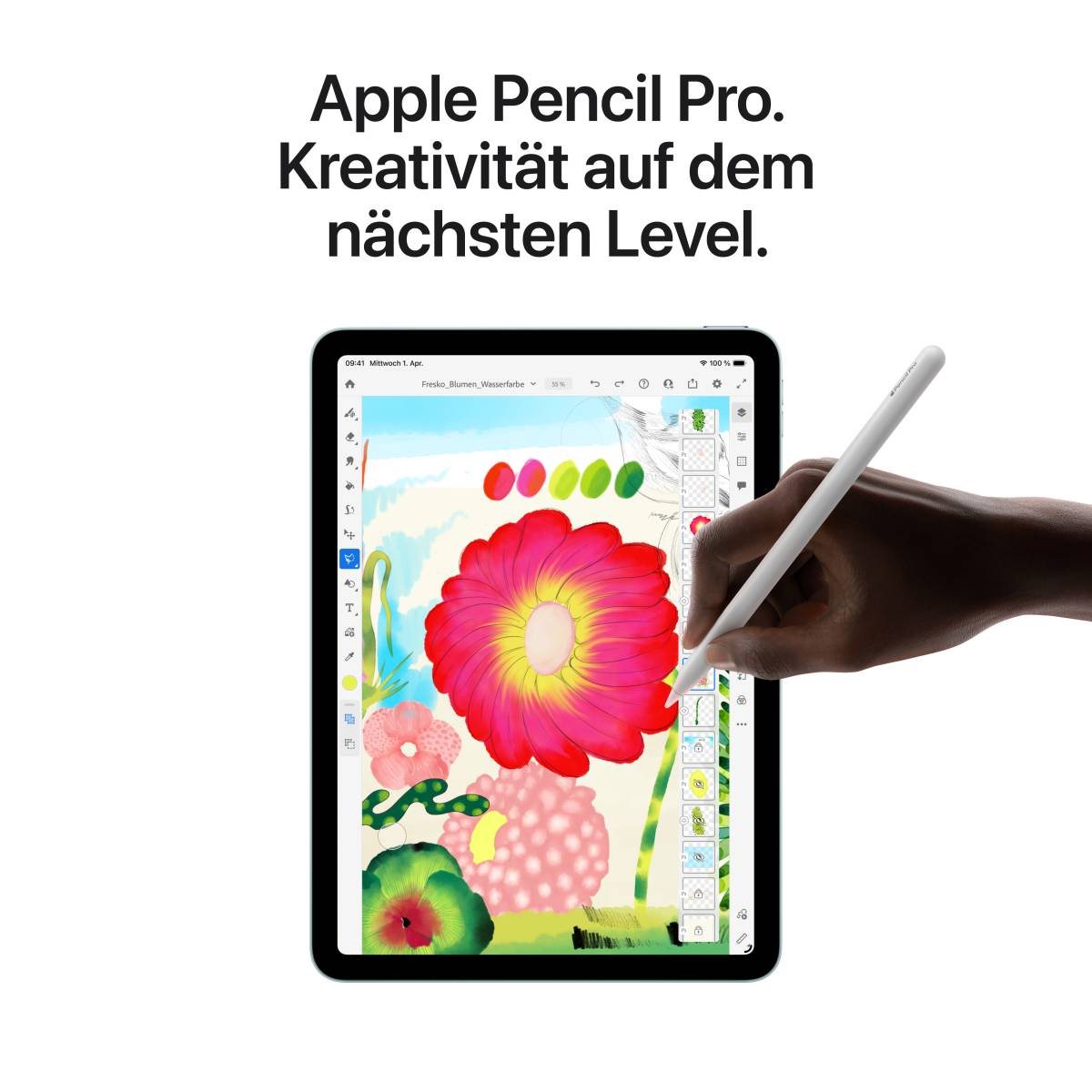 Das 11" iPad Air. Entwickelt für Apple Intelligence.1 Das iPad Air kommt jetzt mit der Power des Apple M4 Chip. Unglaublich leistungsstark und günstig. Es hat ein beeindruckendes Liquid Retina Display, eine 12MP Center Stage Frontkamera für großartige Videoanrufe, iPadOS und superschnelles WLAN 72 Und es ist mit dem Apple Pencil Pro, dem Magic Keyboard für das iPad Air und mehr kompatibel. So kannst du ganz einfach mehrere Aufgaben gleichzeitig erledigen, lernen, arbeiten, spielen und kreativ sein.